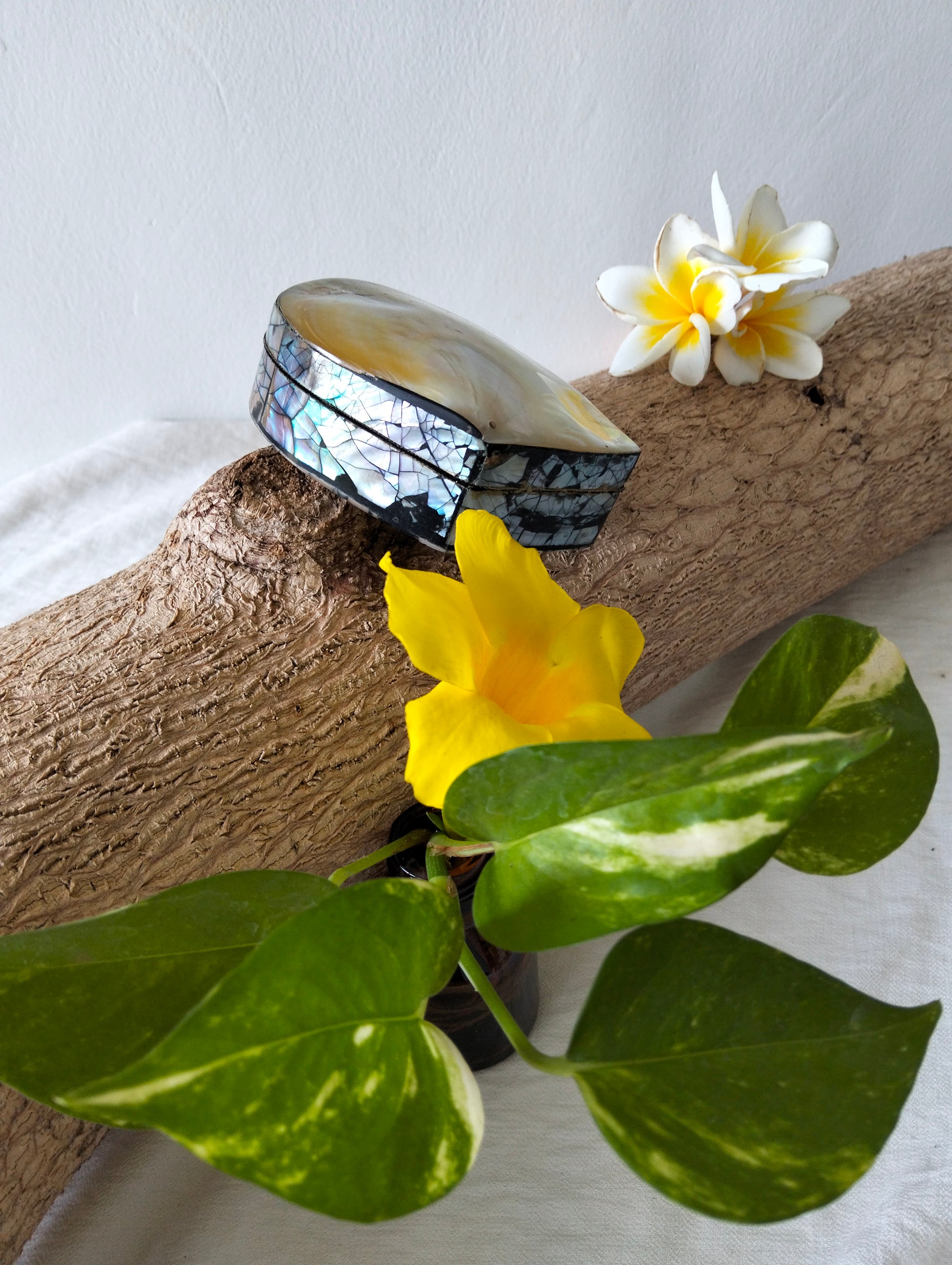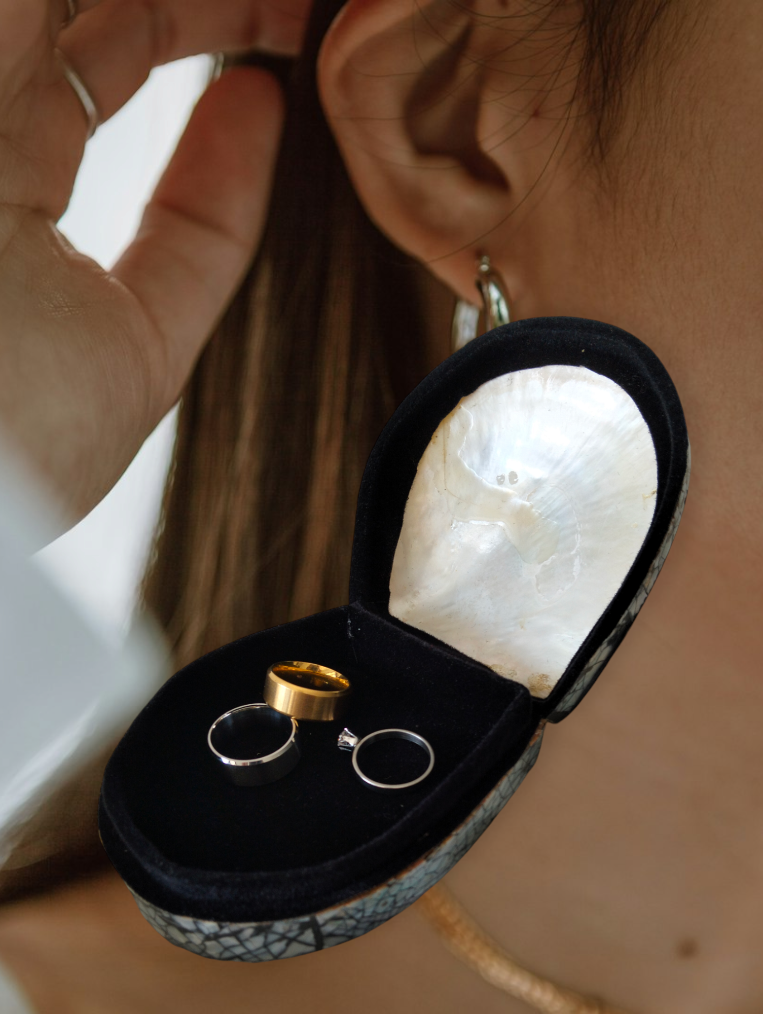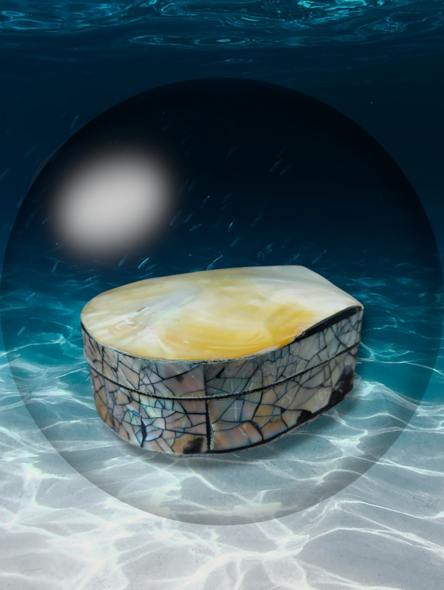 The Lunar Pearl Gift Case is a luxurious and captivating small box, meticulously crafted from genuine shell in the enchanting tropical paradise of Bali. Its iridescent, moonlit sheen and elegant design evoke the serene beauty of a tropical evening, making it an exquisite choice for presenting treasured gifts or storing precious keepsakes.